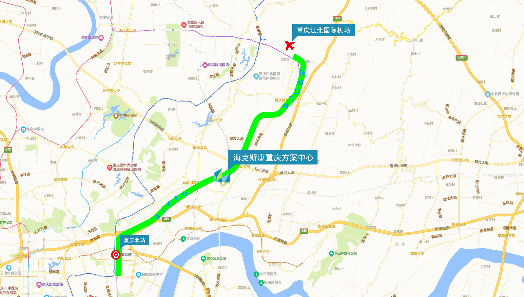 重庆江北机场:14 分钟,10 公里,车费约 18 元