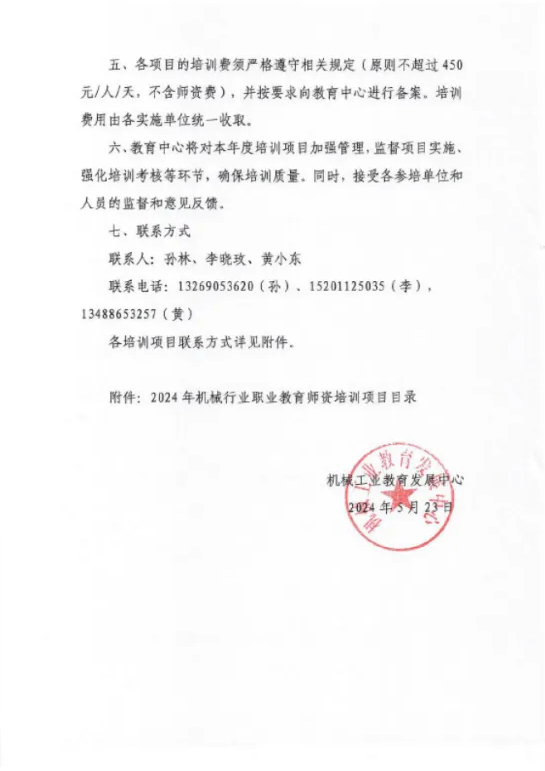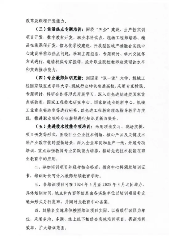 附件1:关于公布2024年度机械行业职业教育师资培训项目的通知