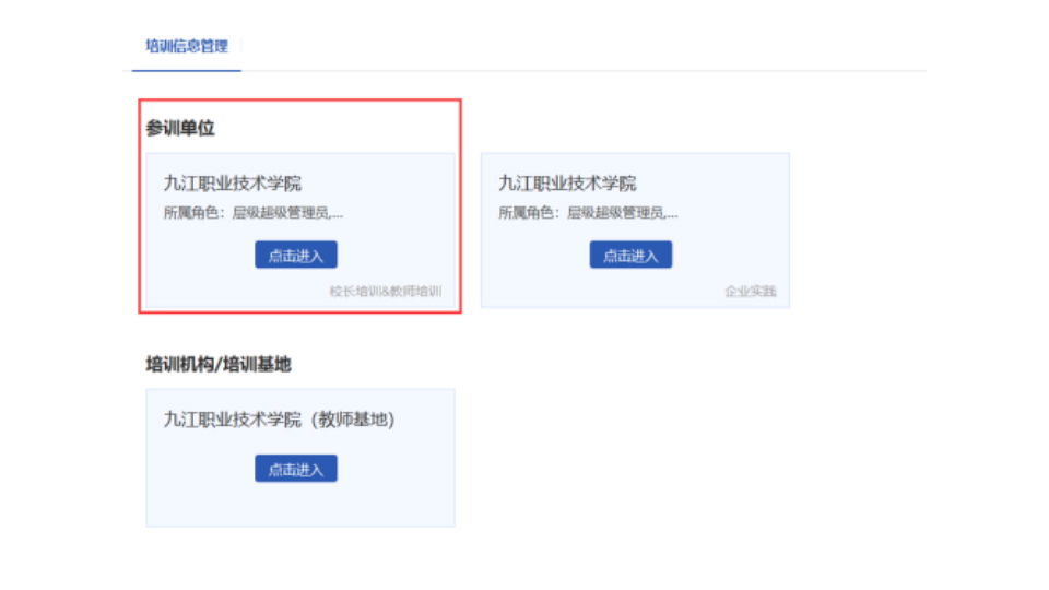 第二步:进入“我管理的工作台”,从“参训单位”端口进入。