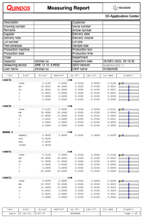 8、评价输出:能够输出绘图报告(圆度、多层圆、直线、平面等)与文本报告。在文本报告中正确设置评价项目的各项参数,并增加注释说明。并对报告进行输出、打印。