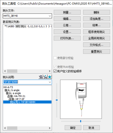 2、测头的选取、定义、校验:根据零件尺寸和检测要求,选择合适的测针、加长杆,添加合适的角度;