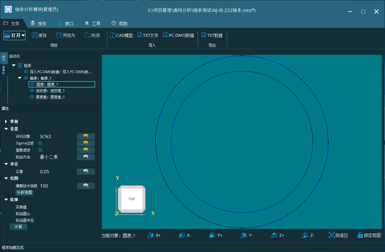PC-DMIS轴承检测软件是基于PC-DMIS测量软件开发,实现轴承圈厚度、圆度、波纹度的测量和分析,输出矢量图形报告和CSV文本报告,首次配置后可自动化执行。
