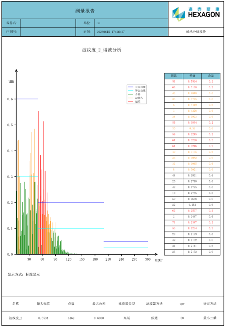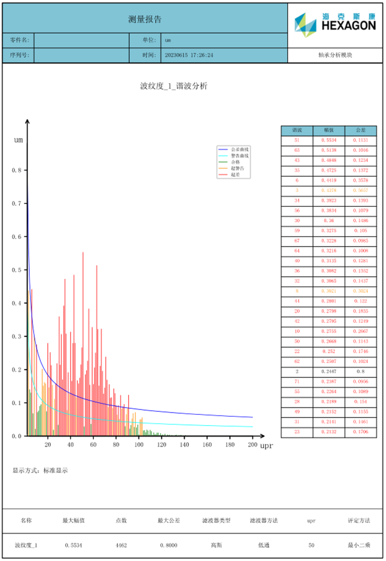3. 波纹度评价支持固定公差、分段公差、多项式公差、RTA曲线公差等多种公差评价方式,支持幅值-阶数报告显示、对数坐标系报告显示等多种矢量图形报告(支持GB/T 32324、GB/T 7234);