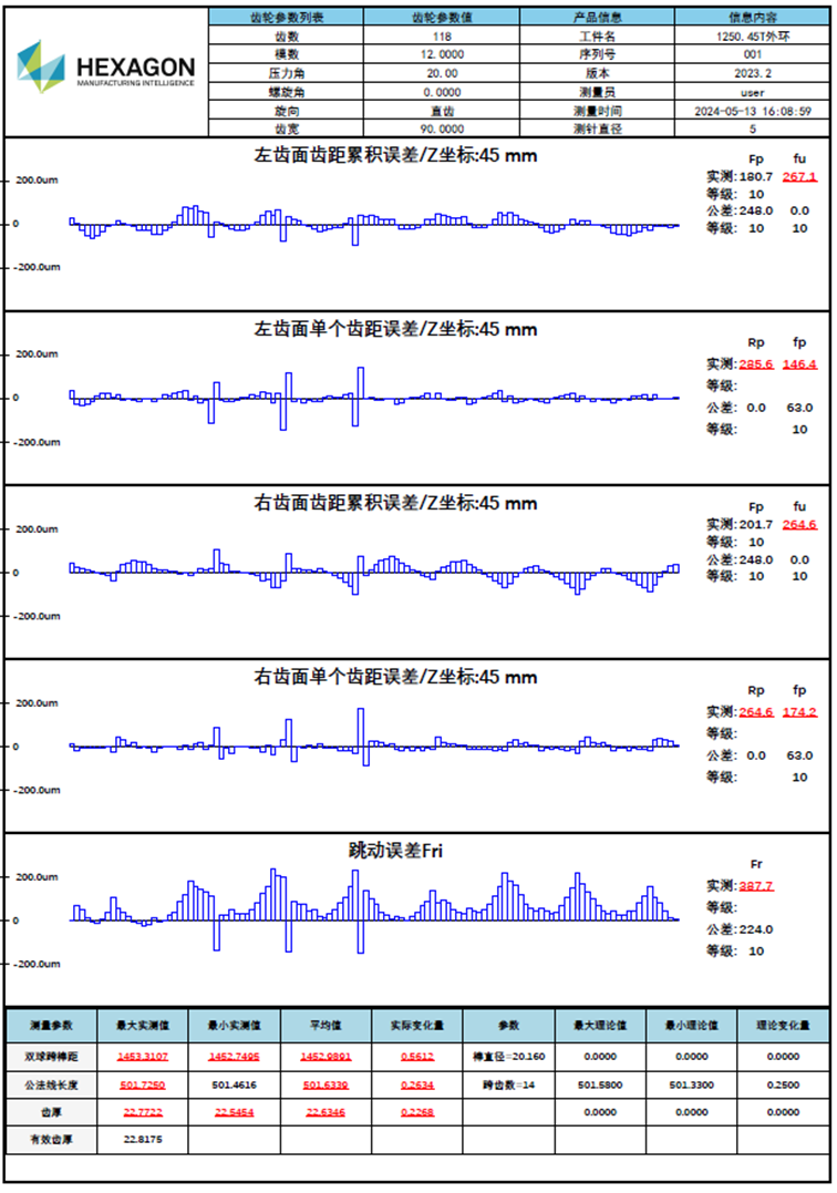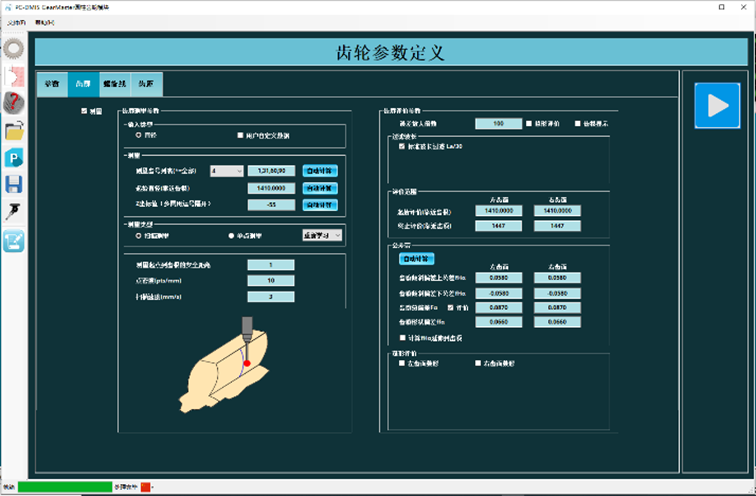 4. 测量参数包括齿廓、螺旋线、齿距、跳动、跨棒距、公法线长度、齿厚等;