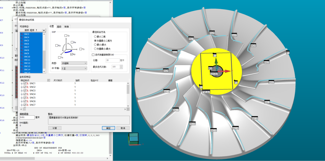 4)最佳拟合,运用曲线 方式旋转2D旋转 ,2D平面为Z正,(这个结合实际摆放形式),方式选择矢量的最小二乘方。