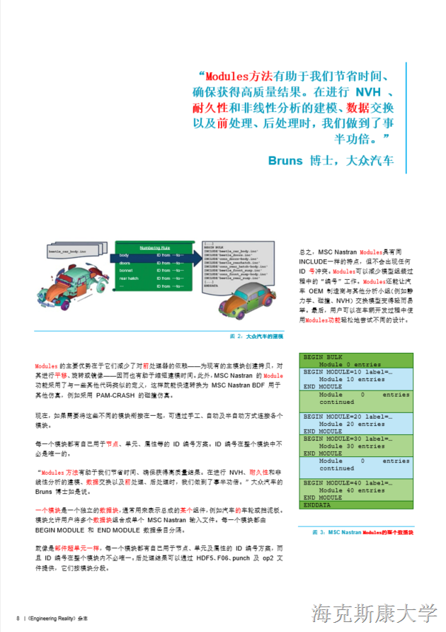 Nastran模块化功能:大众汽车公司在工程开发中采用MSC Nastran Modules功能提升敏捷性、协作性