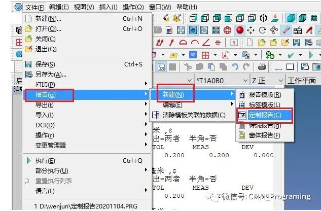 如图一所示, 打开路径是:文件--报告--新建--定制报告,