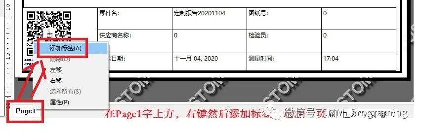 第一页的报告抬头做好后,选中Page1,然后右键,点击”添加标签“,增加第二页。