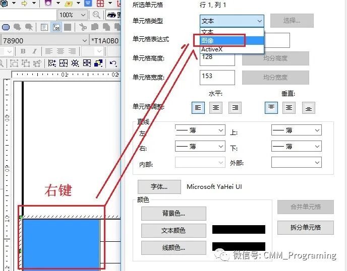 参照图八,选中合并的大单元格,然后右键,选择图像。