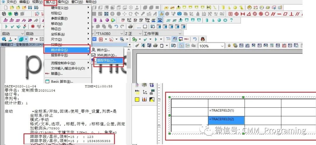参照图十、十一、十二,单元格1、5、6 调用系统的变量,单元格2、3、4 用输入变量, 自己做模板的时候更具实际情况来选择, 注释变量,我们可以用VARIABLE("V2") 或者VARIABLE("C2.INPUT"),两者都可以的。另外一种方法 是用跟踪字段把变量传递到报告模板抬头里,参考图十三,本篇就不详细介绍。