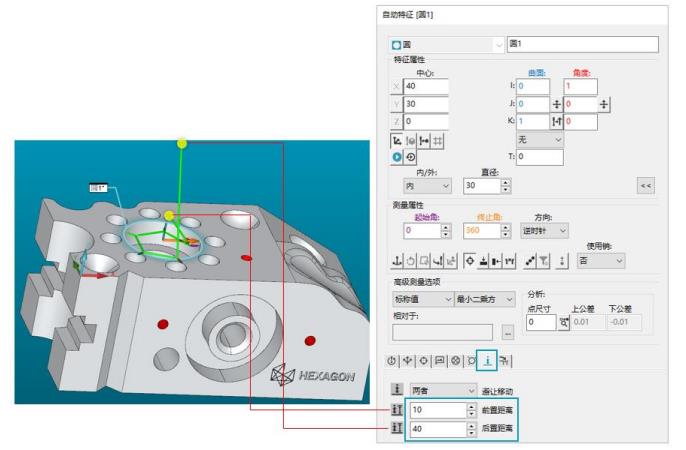 允许用户为自动特征设置不同的前置或后置避让移动距离,减少不同特征间的额外移动, 有助于提高测量程序运行效率。