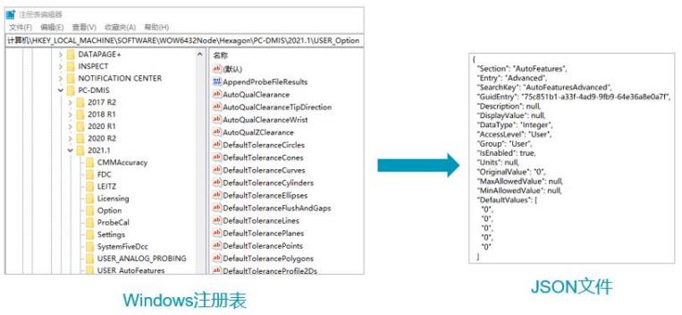 PC-DMIS 注册表设置及接口设置项存储至 JSON 文件,而非原先的 Windows 注册表项。