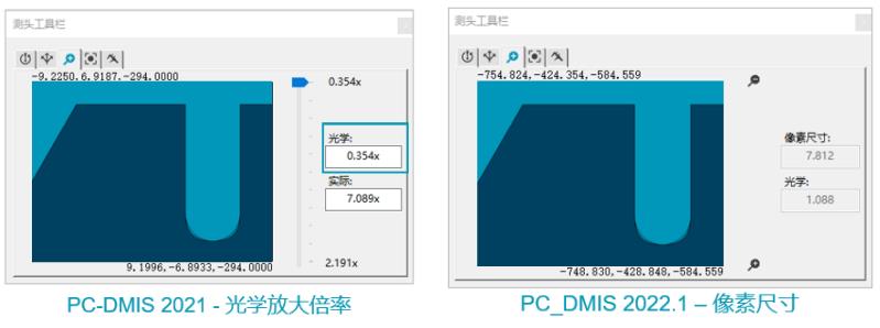 在新的 PC-DMIS 程序中,将采用像素尺寸代替原先的光学放大。