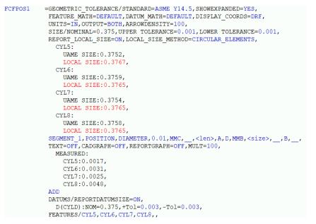4. 导入所需的 GD&T 公差后,请检查 PC-DMIS 生成的 FCF 命令并进行所需的更正。