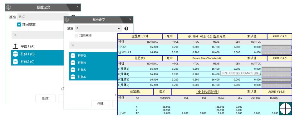 ·支持基准的数学计算选项(ASME Y14.5默认的算法或最小二乘法)