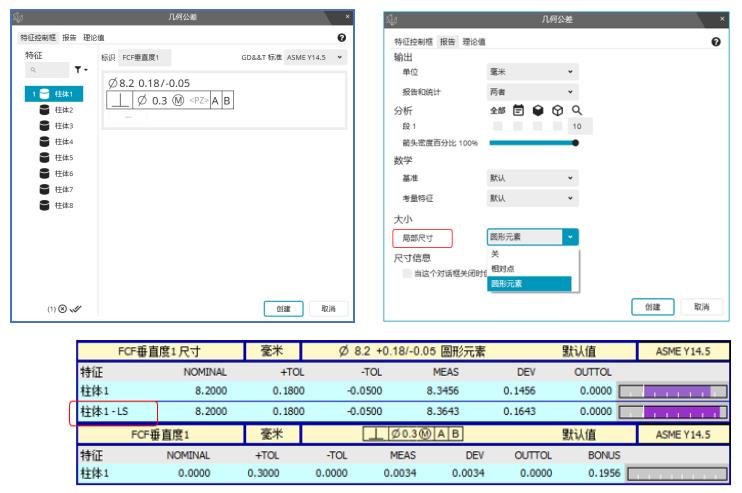 · 支持特征的数学计算选项(ASME Y14.5默认的算法或最小二乘法)