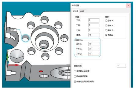 3. 粘贴时,将围绕旋转中心阵列其他特征
