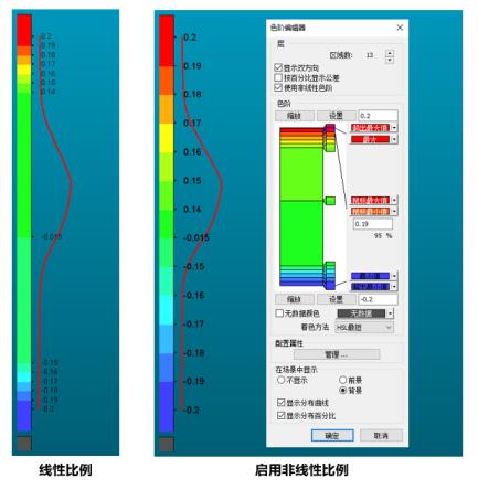 1. 在点云色差图的“色阶编辑器”中,增加使用非线性比例选项。