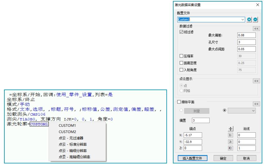 • 用户可在激光数据采集设置对话框中,定义激光扫描配置文件,并可将配置文件插入到测量程序中。