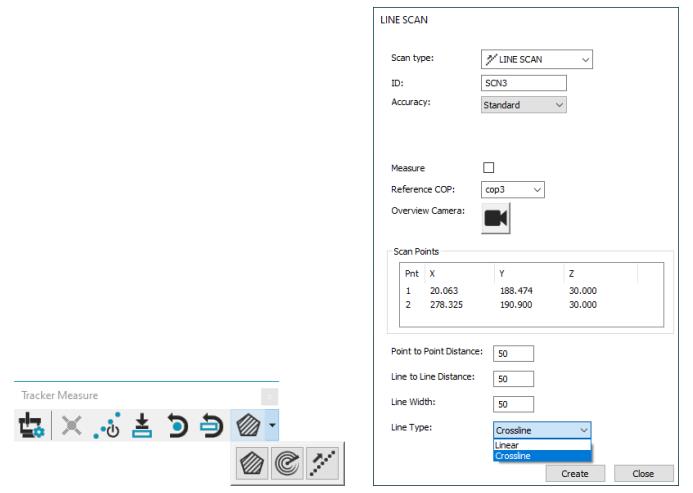 1. 可以从菜单栏中插入线扫描(插入->扫描->线扫描),或者从跟踪仪测量工具栏中点击线扫描按钮。