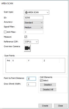 1. 可以从菜单栏中插入区域扫描(插入->扫描->区域扫描),或者从跟踪仪测量 工具栏中点击“区域扫描按钮”,进入区域扫描设置界面。