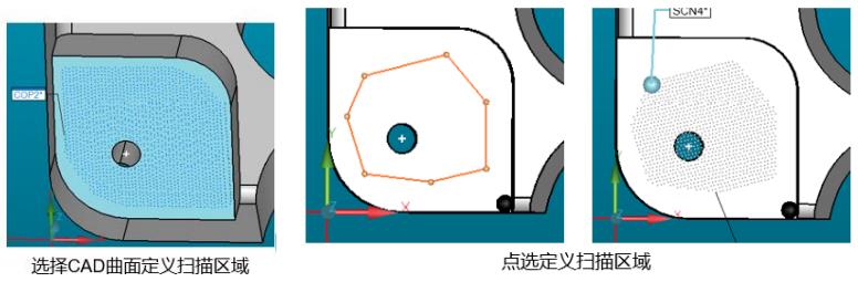 • 可以直接选择一个或者多个CAD曲面进行扫描。“增长-收缩宽度”功能可被应用于CAD模型的所有内、 外边界,来对扫描区域进行偏置,以增大或缩小扫描区域。