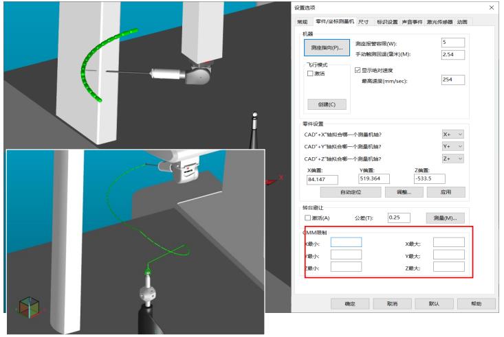 计算并检查测头是否与机器结构(台面、支撑腿、悬臂等)发生碰撞;并根据碰撞检查,自动添加 所需的移动点,保证整个校验的过程安全有效。