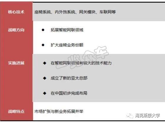 佛吉亚是法国的汽车零部件企业,在汽车座椅、排放控制技术系统、汽车内饰和外饰方面处于世界领先地位。