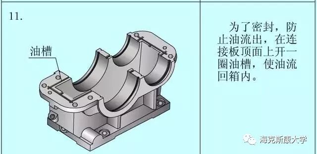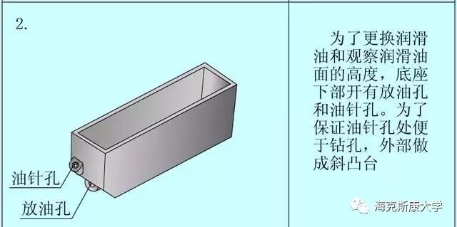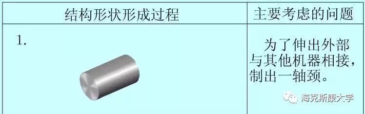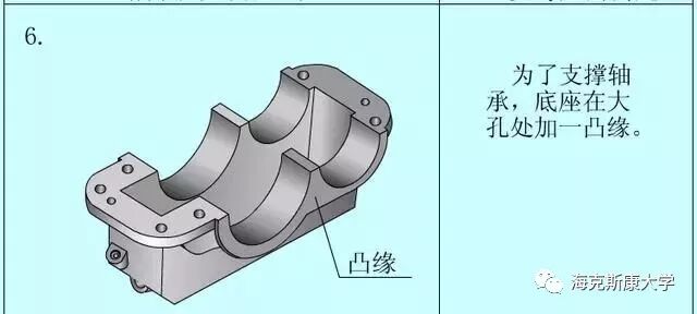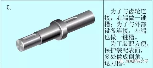 1 零件图的内容 我们首先应该知道的是,一个完整的零件图应包括哪些内容。 (1)图形:用一组视图(包括视图、剖视图、断面图等),完整、清晰和简便地表达此零件的结构形状。 (2)尺寸:用一组尺寸,完整、清晰和合理地标注出零件的结构形状及其相互位置的大小。 (3)技术要求:用一些规定的符号和文字,简明地给出零件在制造、检验和使用时应达到的技术要求。包括粗糙度、尺寸公差、形位公差、基准符号、技术要求等。 (4)标题栏:用标题栏填写出零件的名称、材料、图样的比例、制图人与校核人的姓名和日期等(此图所用标题栏为简化版,工程中只用完整版)。 2 零件结构分析方法 任何从事设计行业的人,都是从模仿开始的。模仿别人的外形,学习他们的设计思路,不断积累经验。零件的结构分析,就是从设计要求和工艺要求出发,分析零件不同结构的功用。我们不仅需要知道这个零件是什么样的(简单地测绘),也要知道为什么要这样设计(设计思路),这样才能提升自己的设计思想,而不是一味地模仿。 (1)从设计要求方面看,零件在机器中,可以起到支撑、容纳、传动、配合、连接、安装和定位等功用,这是决定零件主要结构的依据。 (2)从工艺要求方面看,为了使零件的毛坯制造、加工、测量以及装配和调整工作能顺利、方便,应设计出圆角、起模斜度、倒角等结构,这是决定零件局部结构的依据。 (3)从实用和美观方面看,不仅要求产品能使用,而且还要求经济、美观等,要从美学的角度来考虑结构形状。 3 零件结构分析的示例1 下图为一个减速机的从动轴,它的主要共用是装在轴承中,支撑齿轮传递扭矩,并于外部设备连接。 我们分析它各个特征的作用,以及设计思路。 4 零件结构分析的示例2 下图为一个齿轮箱的底座,这是个较复杂的零件。我们在学校课程设计中必然有设计一个减速箱这一项。现分析齿轮箱底座各个特征的作用。 免责声明:本文源于网络,版权归原作者所有。如涉及版权,请联系删除。