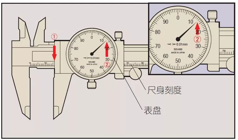 错误结果:10mm+5×0.1mm=10.5mm;或10mm+5×0.05mm=10.25mm