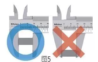 2. 测量时,请使用一定的力量,尽量在量爪根部测量。(图5)