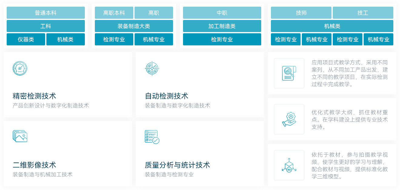 • 对教材中典型工件检测流程与课程重点进行教学演示,教学效果生动直观